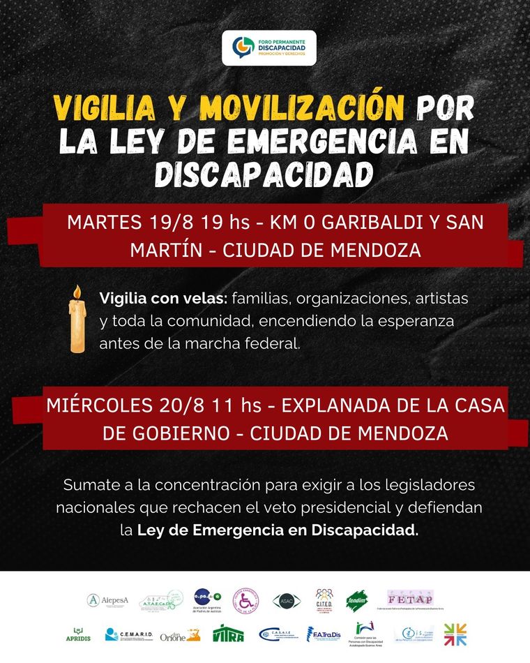 Al día siguiente, la movilización continuará en la explanada de Casa de Gobierno. A partir de las 11 horas habrá una concentración para "exigir a los legisladores nacionales que rechacen el veto presidencial y defiendan la Ley de Emergencia en Discapacidad".