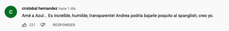 Entre los mensajes que escribieron los usuarios en redes sociales se encuentran “Omar Chaparro enseña a tu hija humildad así como tú eres una persona original y humilde” y “Amé a Azul, es humilde y transparente. Andrea debería bajarle un poco al spanglish”.
