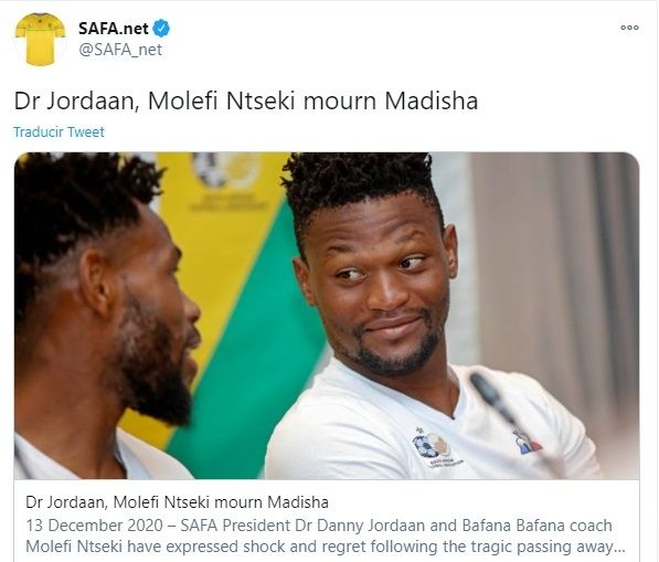 "Todavía estoy tratando de averiguar los hechos de lo que realmente sucedió, pero esta es una noticia terrible para el fútbol", escribió Danny Jordaan, presidente de la Federación Sudafricana de Fútbol.