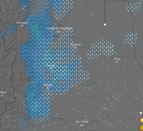 Luego de que el Servicio Metereológico Nacional anunciara tormentas de variada intensidad en el noreste de Mendoza, en la noche del domingo se registran lluvias en algunas zonas de la provincia. El recorrido de la lluvia en dos mapas interactivos. Además, el pronóstico para el lunes.