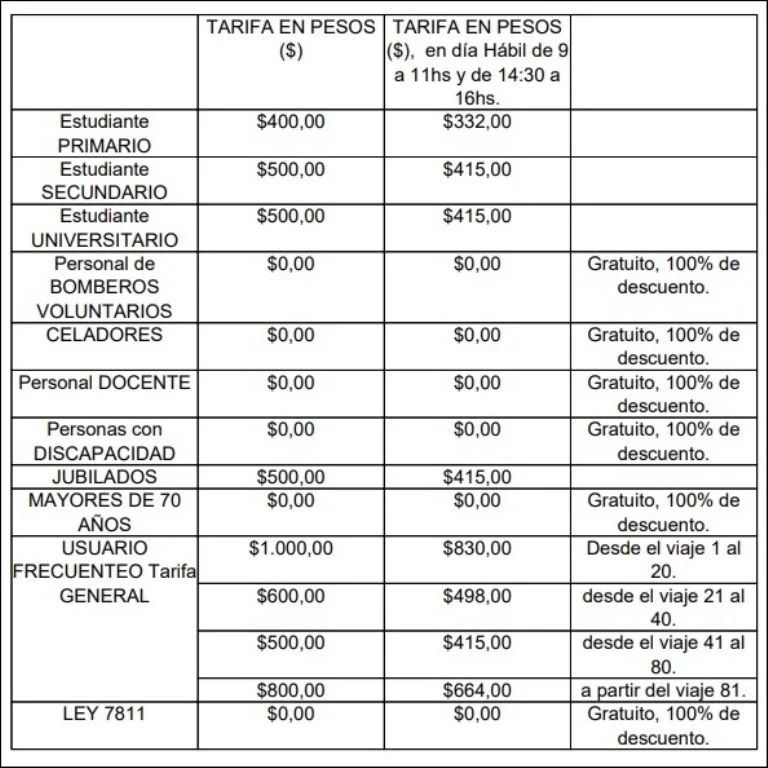 - En el caso del estudiante de nivel secundario y universitario, el boleto costará $500 o $415 en los mismos horarios mencionados.