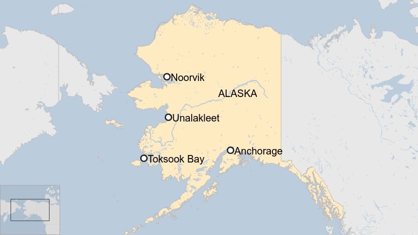 Toksook Bay se encuentra en la costa oeste de Alaska, a unos 800 km de Anchorage, la ciudad más grande del estado.