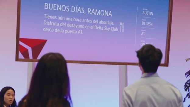 El sistema permitirá mostrar a casi 100 clientes a la vez información única sobre los vuelos, una vez que hayan escaneado sus tarjetas de embarque. Estará disponible en inglés, español, japonés, coreano y otros idiomas.
