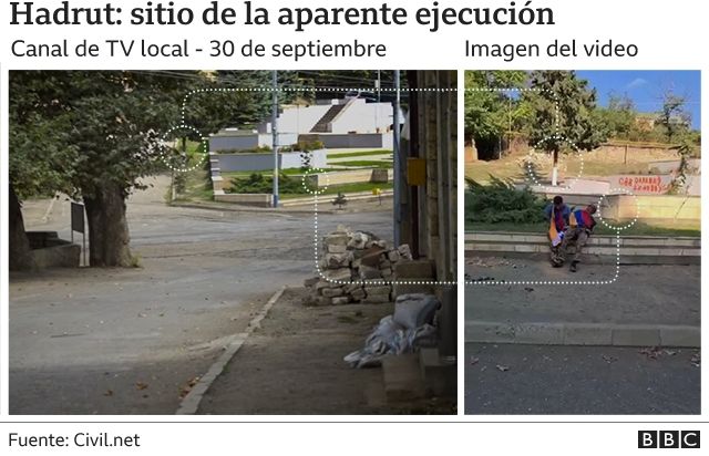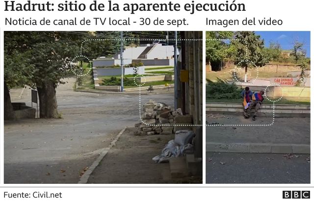 La BBC analizó los videos y confirmó que fueron filmados en Hadrut, una ciudad que ha sido testigo de intensos combates. Está en el sur de Nagorno Karabaj, cerca de Fuzuli.