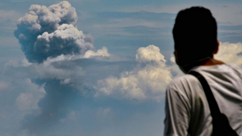 Con la fuerza de la erupción, similar a una bomba nuclear de 100 megatones, se elevaron hacia lo más alto de la atmósfera terrestre nubes de ceniza cuyas partículas hicieron que la Luna se viera azul.