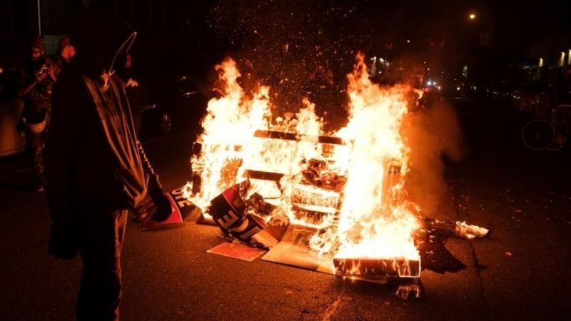 También se acusó a los manifestantes de saquear negocios durante los disturbios.