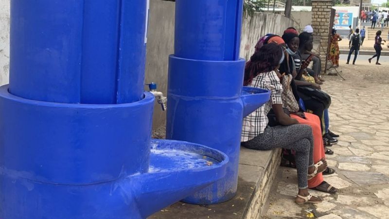 También hay coloridos murales en la universidad más antigua de Senegal que muestra a los estudiantes las técnicas adecuadas para evitar la transmisión del coronavirus.