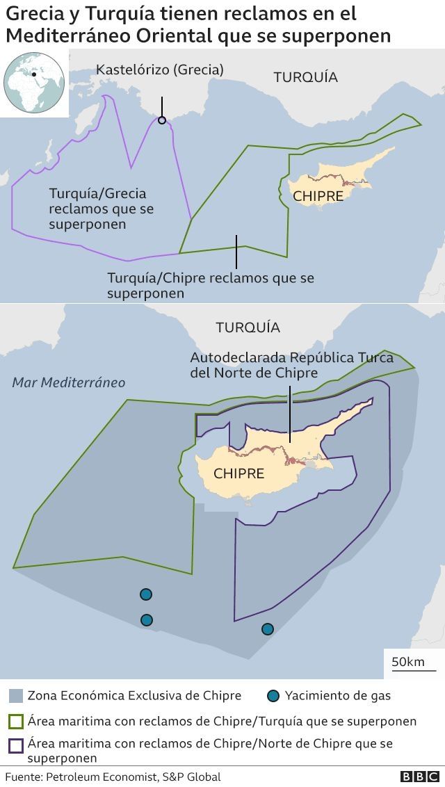 En agosto pasado las tensiones entre Grecia y Turquía renacieron cuando el gobierno de Erdogan ordenó hacer prospecciones de gas en aguas de Chipre que están en disputa con Grecia.