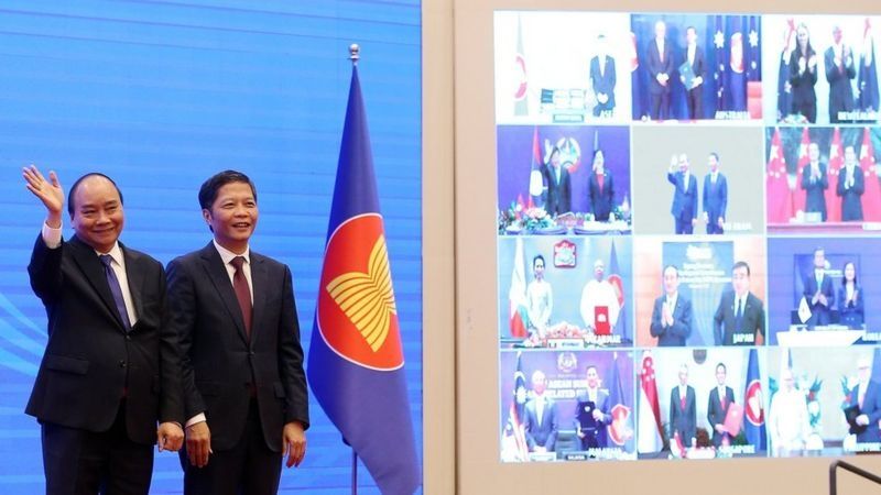 Líderes de Asia firmaron este domingo en Hanoi el megatratado que incluye a los diez miembros de la Asociación de Países del Sudeste Asiático (Asean) además de China, Japón, Corea del Sur, Australia y Nueva Zelanda.