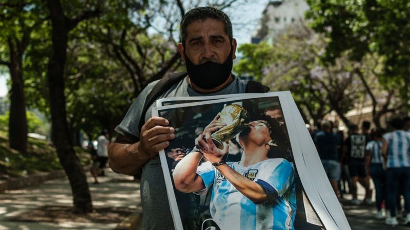 "El pueblo argentino está acá queriendo entrar y queriéndolo ver al más grande del mundo, al 'barrilete cósmico', al 'pibe de oro'", explica Rodríguez. Delante de él, miles de personas esperan, a más de siete cuadras de la Casa Rosada, para hacer lo que Rodríguez sí pudo: despedirse del 10.