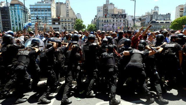 Los hubo después de las 14:30, cuando un grupo de personas intentó superar el cordón de la policía que cerraba el paso hacia la Casa Rosada.