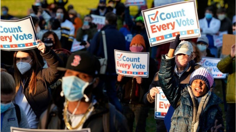 Miles de votos aún no han sido contados y muchos provienen de regiones que históricamente son demócratas, pero medios estadounidenses y la BBC proyectan una victoria de Biden.
