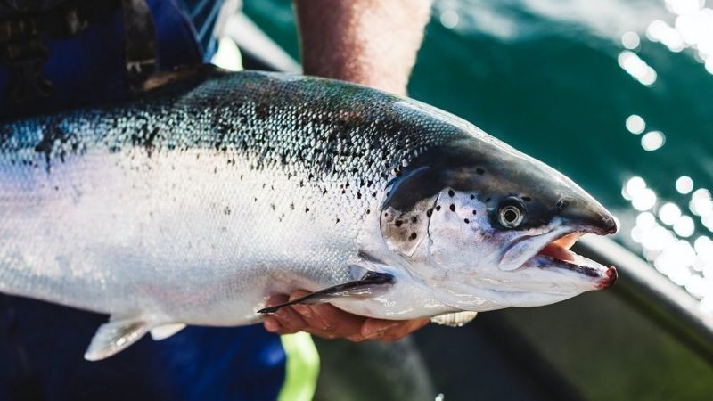 Rory Conn, gerente comercial de Scottish Sea Farms, una empresa dedicada a la producción de salmón en Escocia, dice que en los últimos años se ha extendido el uso de alimentos a base de plantas en la cría de estos peces.