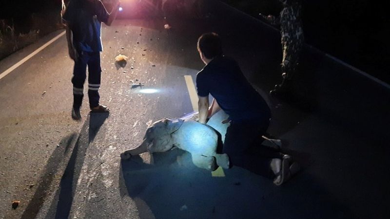 Un elefante bebé atropellado por una motocicleta cuando cruzaba una calle en Tailandia sobrevivió después de que un rescatista (que no estaba trabajando en ese momento) lograra resucitarlo.