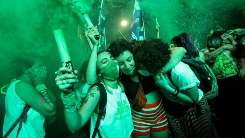 En América Latina, Argentina se convirtió en el quinto país en permitir el aborto por decisión de la mujer, junto a Uruguay, Cuba, Puerto Rico y Guyana.