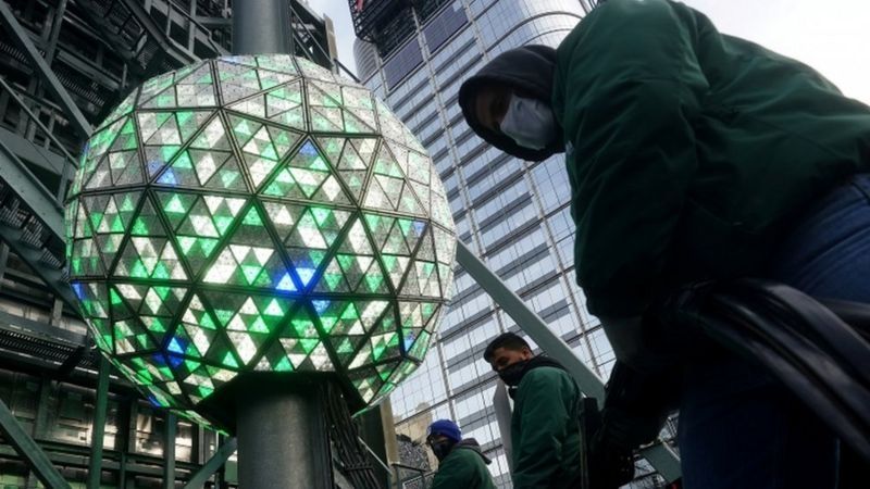En Nueva York, no se canceló el descenso de la archiconocida bola iluminada de Times Square durante la tradicional cuenta regresiva hasta la medianoche, pero con el área cerrada al público.