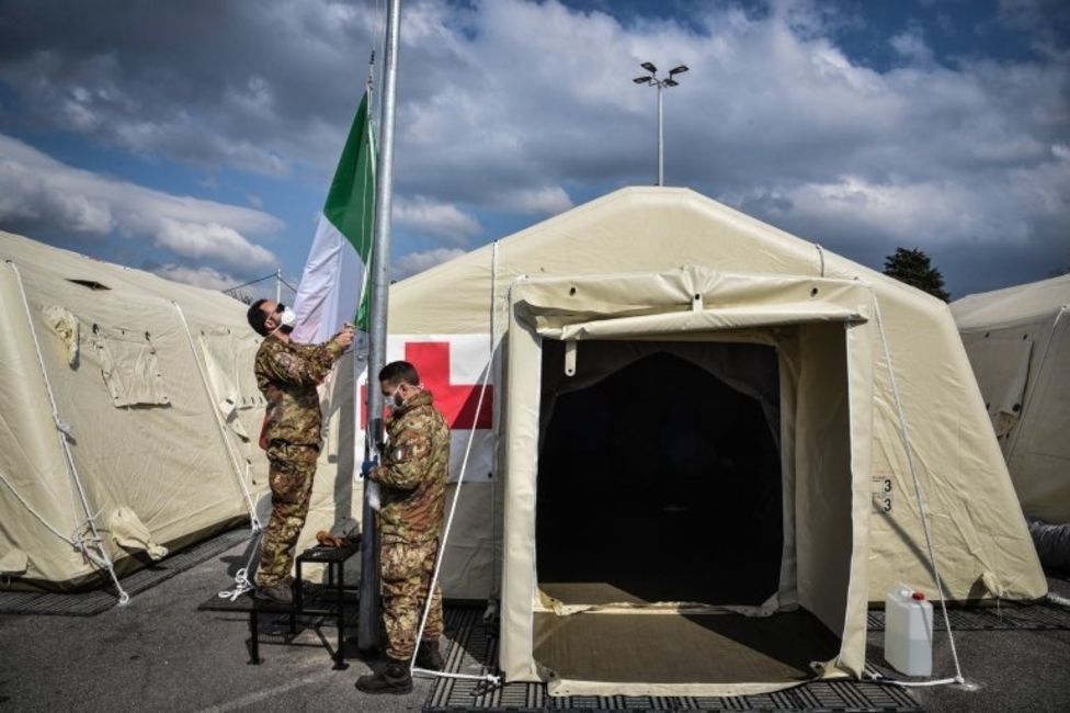 En Crema, Lombardía, el ejército instaló tiendas de campaña y 52 médicos que llegaron de Cuba ayudarán a los profesionales de la salud locales.