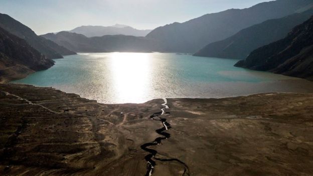 Una de las consecuencias visibles de la falta de lluvias en la región del centro de Chile es que los embalses empiezan a tener menos agua, incluso a secarse.