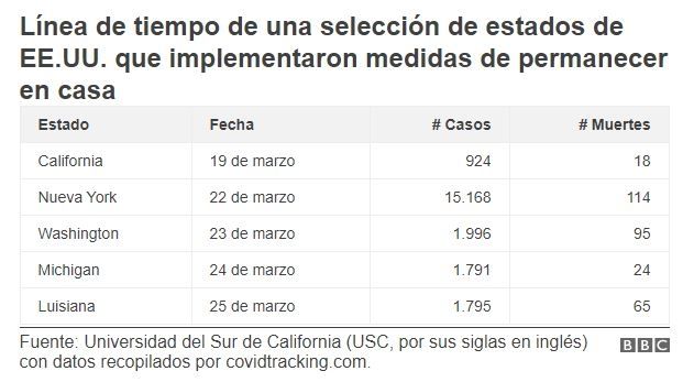 En ese momento, California registraba menos de 1.000 casos confirmados y casi una veintena de muertes, y se convertía en el primer estado del país en implementar acciones tan drásticas para contener la pandemia.