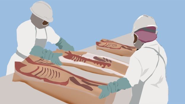 La BBC habló con media docena de empleados, antiguos y actuales, de Smithfield que dicen que si bien tenían miedo de seguir trabajando, no estaban en la capacidad de elegir entre resguardar el empleo o su salud.