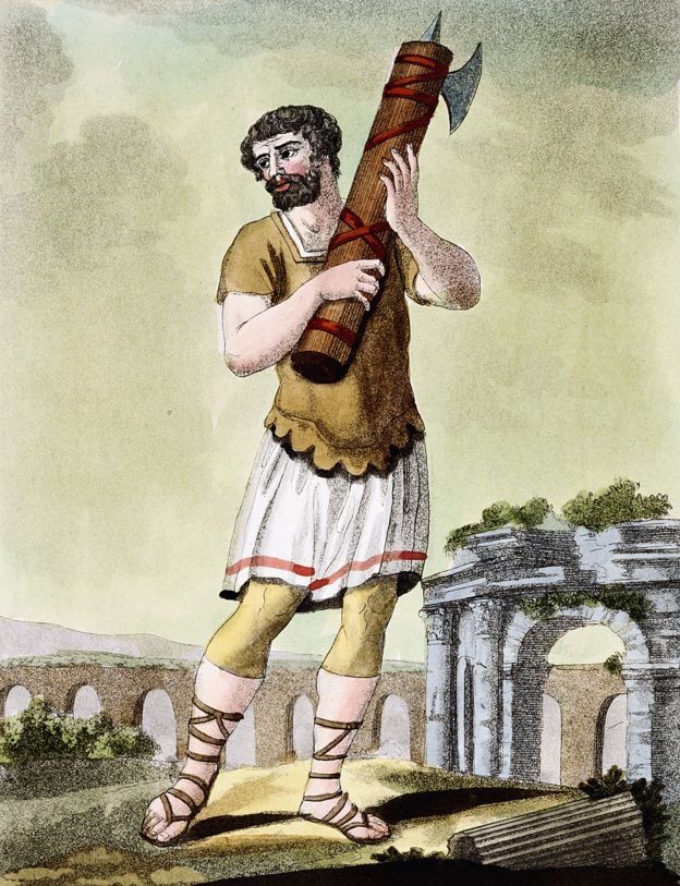Venían de la cultura etrusca, como parece confirmar un conjunto de fasces de hierro en miniatura en una tumba de esa cultura del siglo VII a.C., hallada en Vetulonia, Italia.
