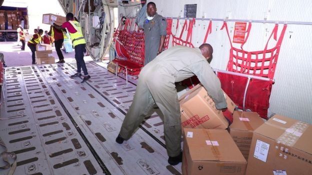 Los embajadores chinos están frecuentemente en las ceremonias en los aeropuertos para recibir suministros médicos enviados por Ma, desde Sierra Leona a Camboya.