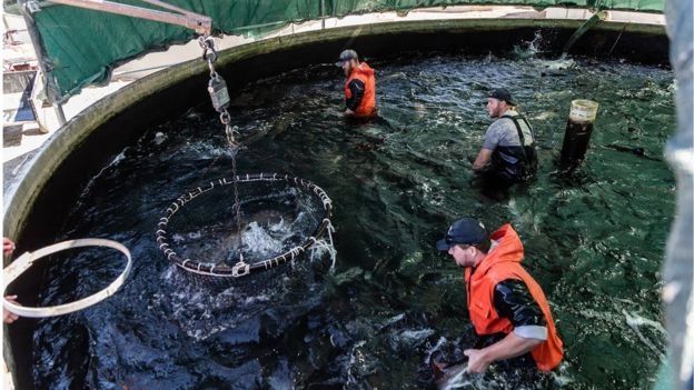 "Nuestro objetivo es eventualmente reducir el precio de nuestro salmón para que sea más bajo que el salmón cosechado convencionalmente", dice.