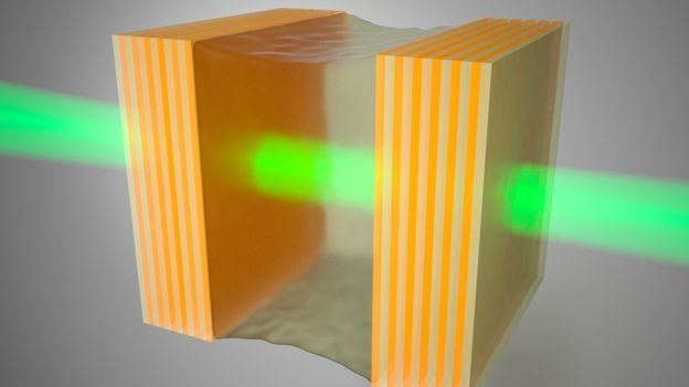 Esa es la función de los dos pequeños espejos curvos que forman parte del experimento, los cuales se colocan muy cerca el uno del otro, con una gota de aceite de oliva en el medio, dentro de una cavidad.