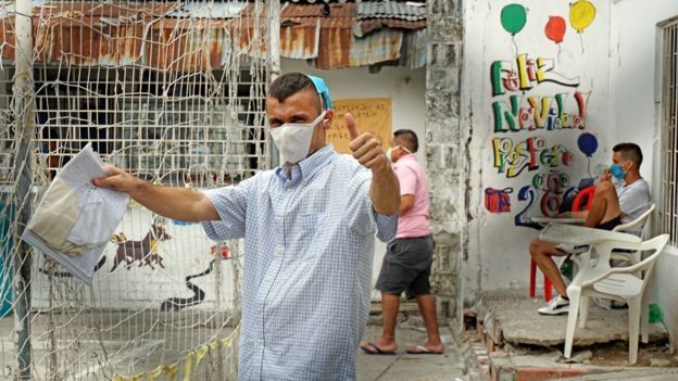 De vuelta a Villavicencio, en Colombia, Johan Alarcón, guardia en la cárcel de Villavicencio y presidente del sindicato de funcionarios penitenciarios, le dice a BBC Mundo que de los 400 contagiados con coronavirus, 40 son funcionarios.