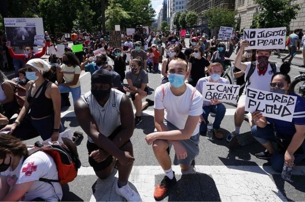 Los manifestantes denuncian que la muerte de Floyd es un acto de discriminación racial y exigen que se tomen medidas para evitar que sucesos así se repitan y que los otros tres agentes que estuvieron presentes durante el suceso sean llevados ante la justicia.