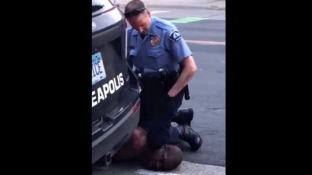 Al ser inmovilizado con la rodilla en su cuello, el hombre intenta pedir ayuda y grita en varias ocasiones "no puedo respirar" o "voy a morir".
