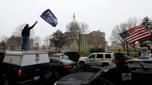 Cientos de manifestantes, algunos con armas largas a la vista, entraron días después al capitolio de Michigan, uno de los estados mencionados por el presidente, para reclamar la reapertura de la economía.