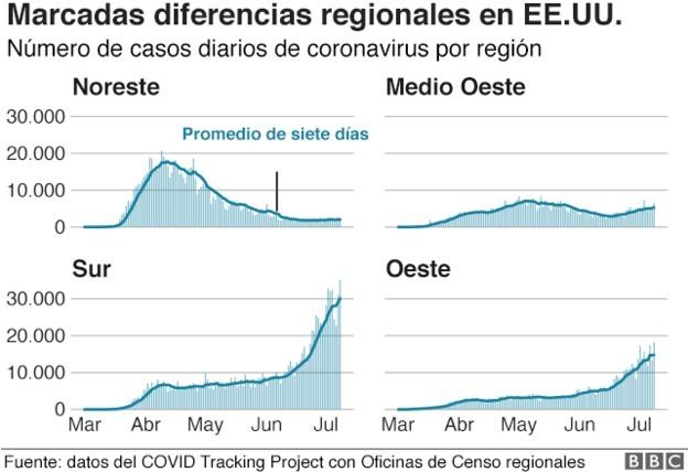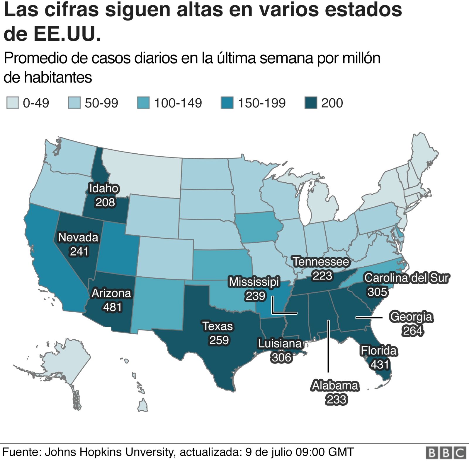 El verano no da tregua a la pandemia del coronavirus en Estados Unidos. Todo lo contrario: el país ha experimentado un resurgimiento de la enfermedad en varios estados, especialmente en el sur y occidente del país.