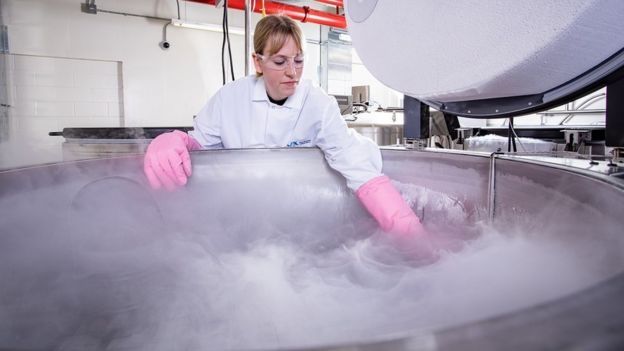 Las muestras de semen de animales se mantienen en cámaras de crioconservación.