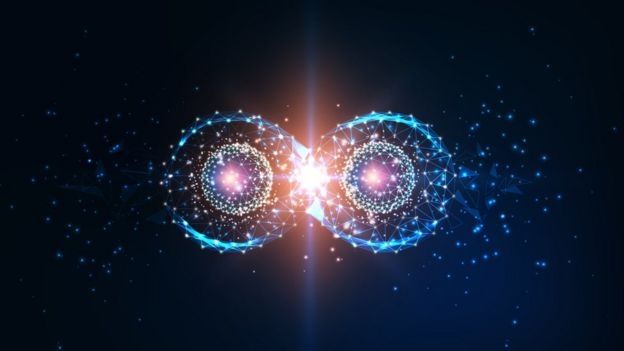 Y es posible que haya un objeto que esté en la Tierra y otro en otra galaxia, e instantáneamente éste se entera (del cambio) y se voltea. Esto se ha probado en laboratorio.