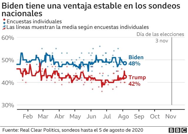 Hecha esa advertencia, Biden ha estado por delante de Trump en las encuestas nacionales la mayor parte del año.