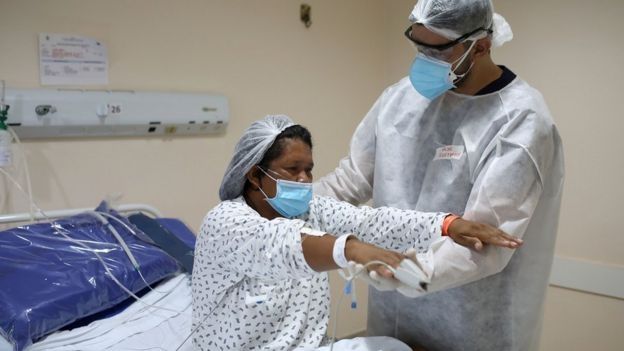 "Permanecen entubados por mucho tiempo, traqueostomizados, en ECMO (acrónimo del inglés extracorporeal membrane oxygenation u "oxigenación por membrana extracorpórea", que consiste en usar una máquina que hace la función del corazón y los pulmones y bombea la sangre)", señala la neumóloga e investigadora Margareth Dalcolmo, de la Fundación Oswaldo Cruz (Fiocruz), el principal centro de investigación en salud de Brasil y el mayor de América Latina.