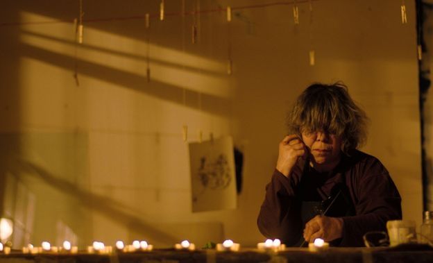 Pero la artista no necesita luz, porque no utiliza un espejo ni una fotografía.