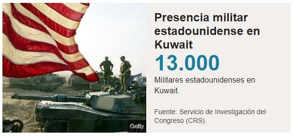 Desde la Guerra del Golfo, EE.UU. ha instalado un amplio número de bases militares en los países del golfo Pérsico y en la actualidad Kuwait alberga alrededor de 13.000 tropas estadounidenses en su territorio, según informes del Servicio de Investigación del Congreso de EE.UU. (CRS, por sus siglas en inglés).
