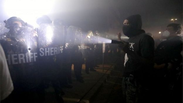 Los agentes utilizaron gases lacrimógenos para tratar de dispersar a cientos de manifestantes que desafiaron el toque de queda en todo el condado.
