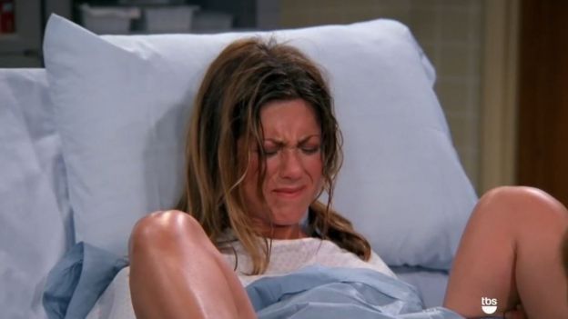 Son muchos los ejemplos: desde Ellen Page en Juno, hasta Katherine Heigl en Knockedp up ("Ligeramente embarazada") o la escena de Rachel (Jennifer Aniston) durante su parto en la serie Friends.