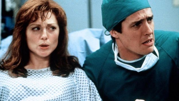 Samuel Faulkner (Hugh Grant) en la comedia romántica Nine months ("Nueve meses") es el ejemplo perfecto de lo que NO debe hacer el padre —u otro acompañante de la parturienta— en la sala de parto.