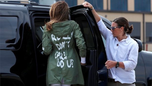 En 2018 generó una gran controversia tras usar una chaqueta con las palabras "Realmente no me importa, y ¿a ti?" escrito en la parte de atrás de su chaqueta durante un viaje a un centro de detención de niños migrantes.