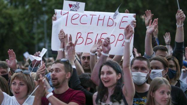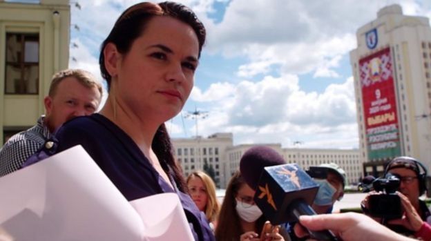 Svetlana Tikhanovskaya, la esposa de un blogger encarcelado, se enfrentará al presidente en las elecciones del 9 de agosto, mientras que la gente sale a las calles para exigirle que se vaya.