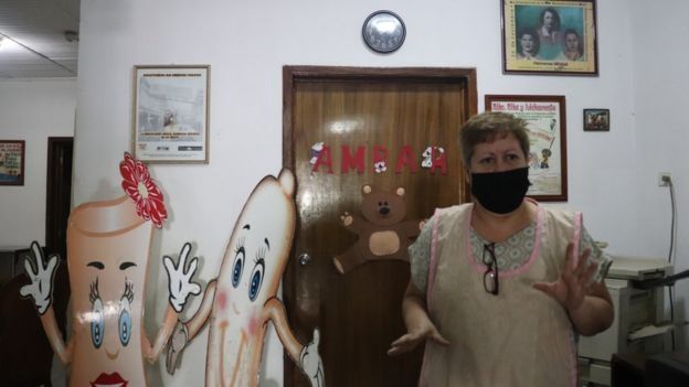 "Aquí tenemos muchos niños con desnutrición y hemos buscado la ayuda de empresas para que los más pequeños tengan el desayuno y el almuerzo", le dijo a BBC Mundo en una de las aulas que la pandemia del coronavirus ha dejado vacías.