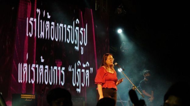 Bajo los aplausos de miles de estudiantes de una de las principales universidades tailandesas, leyó un manifiesto que ha tenido enorme repercusión. Tiene 10 puntos en los que hace un llamado para reformar la monarquía.