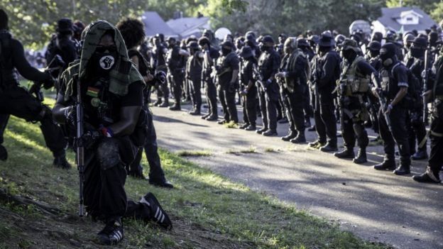 Por ejemplo, en ciertas protestas contra la muerte de afroestadounidenses a manos de la policía una milicia negra conocida por las siglas de NFAC (Not Fucking Around Coalition) movilizó a cientos individuos fuertemente armados.