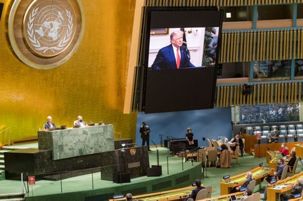 Trump elevó el tono en su mensaje a la Asamblea General y protestó contra lo que, como en otras ocasiones, ha llamado "el virus chino".
