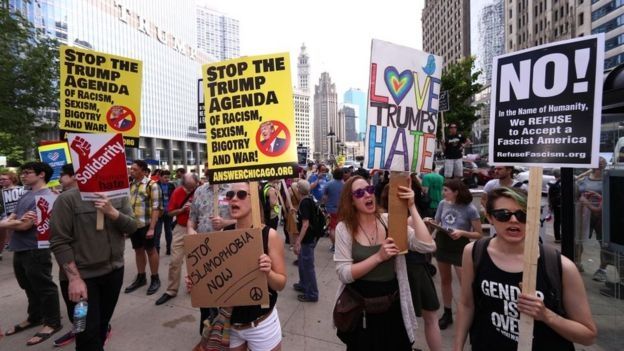 "Si se cree que los fascistas son bufones, racistas, déspotas misóginos, las personas que los apoyan deplorables y un líder político que incita a las fuerzas paramilitares contra los manifestantes no es muy diferente de Mussolini dándole rienda suelta a sus matones de camisa negra en contra de trabajadores desarmados, se podría sentir tentado de llamar fascista al actual presidente de los Estados Unidos".