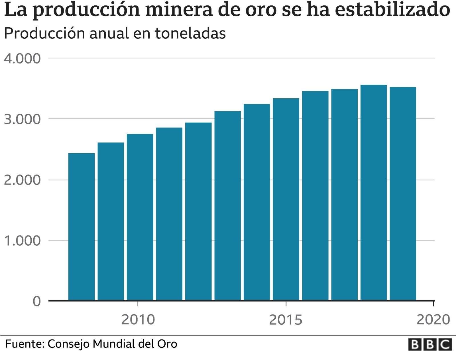 "Aunque el crecimiento en la oferta puede ralentizarse o disminuir ligeramente en los próximos años conforme se agotan las reservas existentes y los nuevos descubrimientos se vuelven cada vez más escasos, sugerir que la producción ha alcanzado su punto máximo puede ser un poco prematuro", dice Hannah Brandstaetter, portavoz del Consejo Mundial del Oro.
